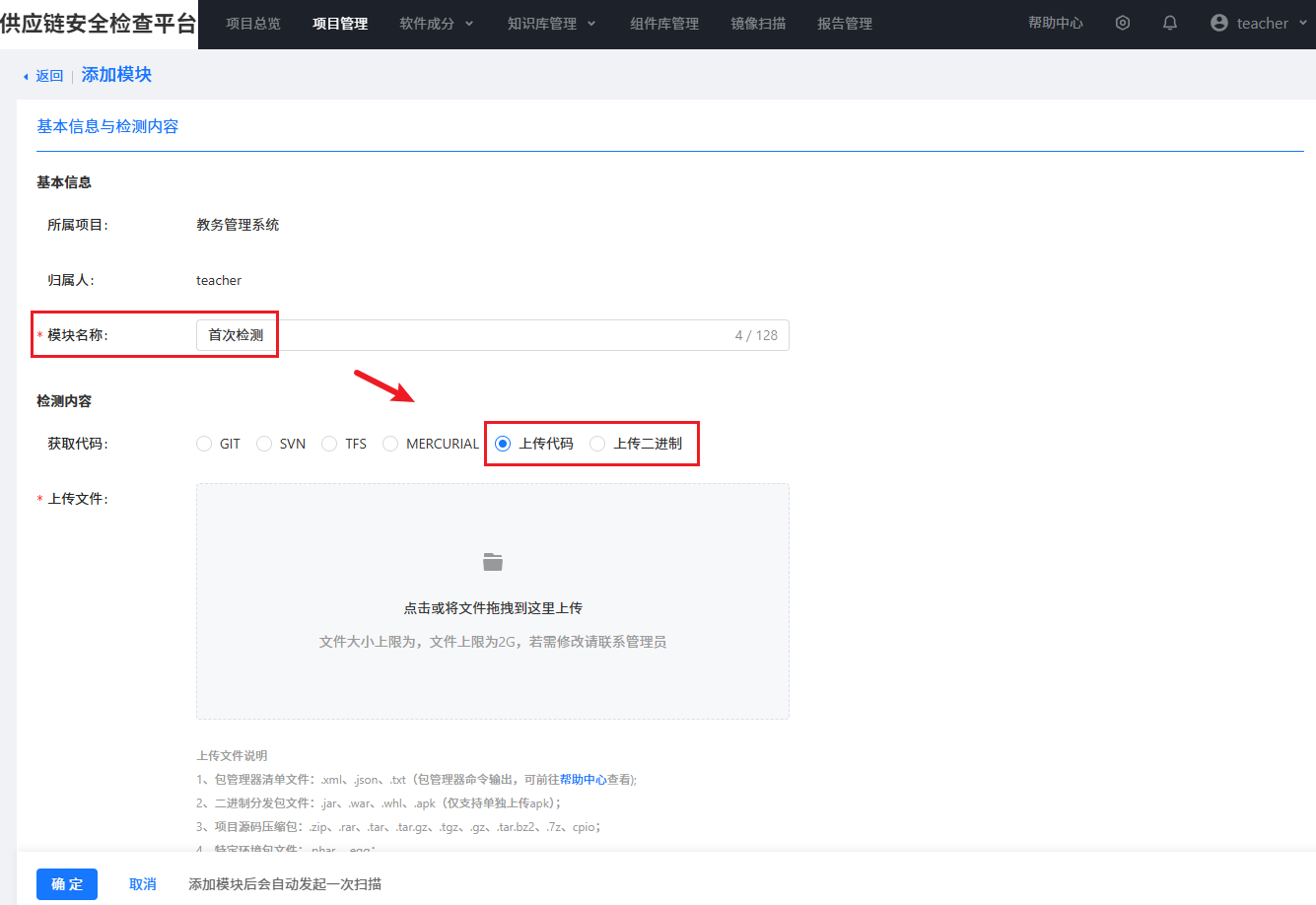 注:上传文件有格式要求,请查看界面下方“上传文件说明”。